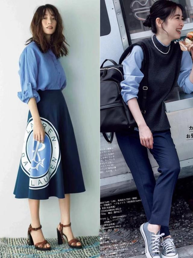r要想穿出轻熟风,那可千万不能错过浅色调的卡其色与浅蓝色组合,能够柔化面部线条,减少岁月痕迹的显露,同时这两种颜色都属于高级感色彩,能够提升整体造型的品质感。