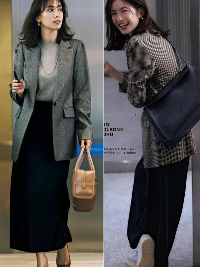 (穿法3)西装+垂感长裙=知性又优雅
