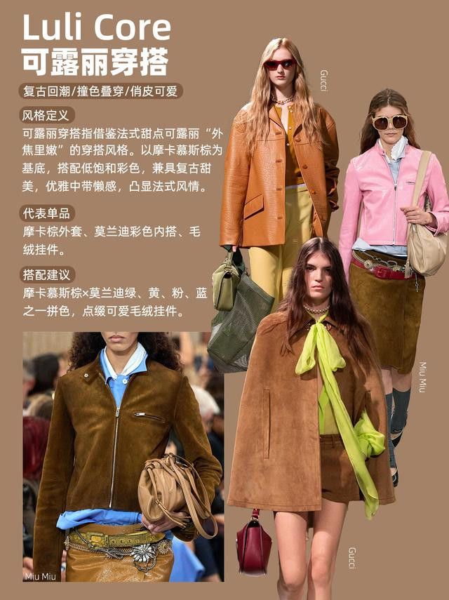 可露丽穿搭是2025年最具代表性的新穿搭趋势之一,选用了棕色与彩色的撞色搭配,而这种配色灵感源自于甜品,但通过与成熟单品的结合,巧妙地避免了过于幼稚的风险,既复古又知性,十分适合我们中年女性尝试。