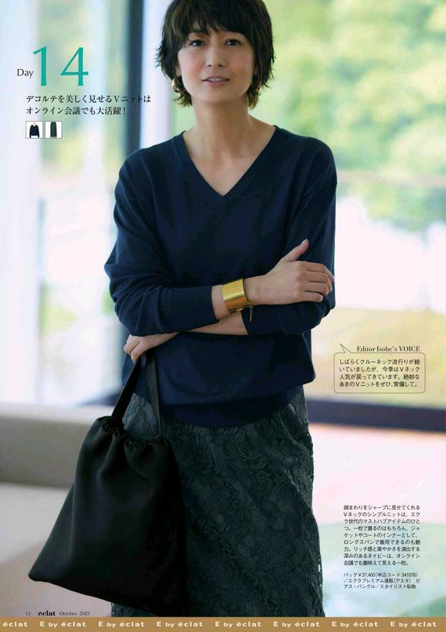 适当的露肤打破了职场服装常见的全覆盖状态,可以营造出带有呼吸感的造型。建议大家多尝试V字型领口设计的上衣露出锁骨,不仅能修饰脖颈线条,拉长颈部视觉效果,还能增添几分优雅与性感,是中年女性展现魅力的绝佳方式~