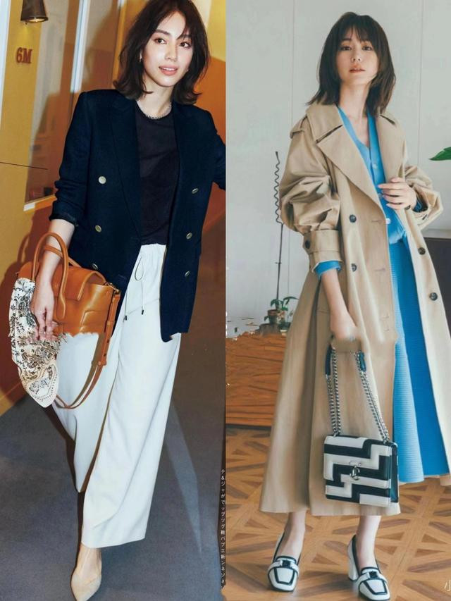 建议大家多尝试浅“卡其色风衣+浅蓝色连衣裙”的搭配,风衣的利落线条与连衣裙的柔美曲线形成对比,干练又不失女人味的效果。